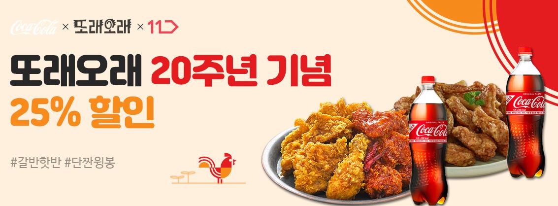 또래오래 20주년 기념 25% 할인 또래오래 20주년 기념 25% 할인 정보 포스팅입니다. 또래오래 다양한 메뉴를 할인 판매하네요. 할인 메뉴 : 갈반핫반, 단짠윙봉 또래오래 20주년 기념 25% 할인 정보 [링크] 핫딜/식품&생활 2021.06.16