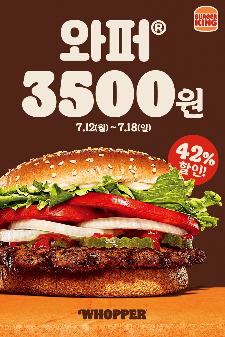 버거킹 할인 이벤트 버거킹 할인 이벤트 정보 포스팅입니다. 버거킹 와퍼 할인 이벤트를 진행하네요. 이벤트 가격 3500원 이벤트 기간 : 2021년 7월 12일 ~ 7월 18일 핫딜/식품&생활 2021.07.12