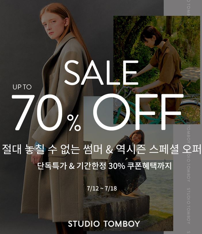 스튜디오 톰보이 최대 70% 세일 스튜디오 톰보이 최대 70% 세일 정보 포스팅입니다. 스튜디오 톰보이 다양한 제품을 할인 판매하네요. 할인 품목 : 코트, 점퍼, 티셔츠 등 이벤트 기간 : 2021년 7월 18일까지 스튜디오 톰보이 최대 70% 세일 정보 [링크] 핫딜/화장품 2021.07.12