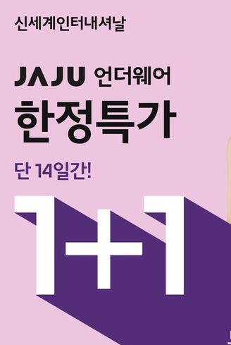 자주 언더웨어 1+1 이벤트 자주 언더웨어 1+1 이벤트 정보 포스팅입니다. 자주 다양한 제품을 1+1 판매하네요. 할인 품목 : 팬티, 브라 등 자주 언더웨어 1+1 이벤트 정보 [링크] 핫딜/화장품 2021.07.26