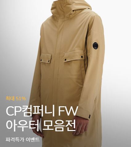CP컴퍼니 아우터 모음전 최대 51% 세일 CP컴퍼니 아우터 모음전 최대 51% 세일 정보 포스팅입니다. CP컴퍼니 다양한 제품을 할인 판매하네요. 할인 품목 : 점퍼, 셔츠, 팬츠 등 CP컴퍼니 아우터 모음전 최대 51% 세일 정보 [링크] 핫딜/패션&스포츠 2021.10.12