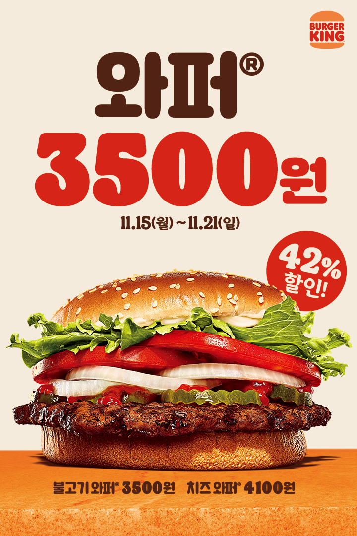 버거킹 할인 이벤트 버거킹 할인 이벤트 정보 포스팅입니다. 버거킹 다양한 메뉴를 할인 판매하네요. 할인 메뉴 : 와퍼, 불고기와퍼, 치즈와퍼 이벤트 기간 : 2021년 11월 15일 ~ 2021년 11월 21일 핫딜/식품&생활 2021.11.15