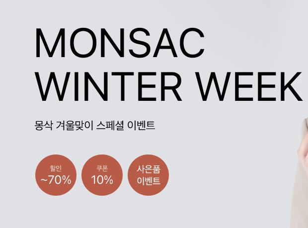 몽삭 겨울맞이 최대 70% 세일 몽삭 겨울맞이 최대 70% 세일 정보 포스팅입니다. 몽삭 다양한 제품을 할인 판매하네요. 할인 품목 : 크로스백, 쇼퍼백 등 이벤트 기간 : 2021년 12월 6일까지 몽삭 겨울맞이 최대 70% 세일 정보 [링크] 핫딜/화장품 2021.11.23