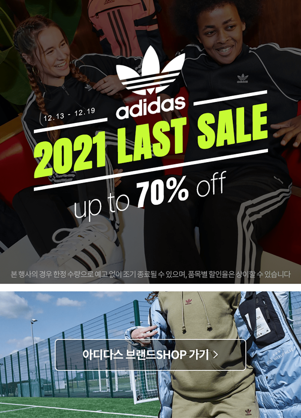 아디다스 2021 라스트 세일 아디다스 2021 라스트 세일 정보 포스팅입니다. 아디다스 다양한 제품을 할인 판매하네요. 할인 품목 : 점퍼, 티셔츠, 운동화 등 이벤트 기간 : 2021년 12월 19일까지 아디다스 2021 라스트 세일 정보 [링크] 핫딜/패션&스포츠 2021.12.14