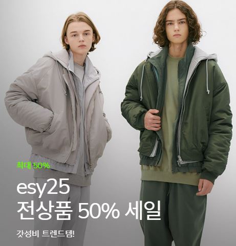 esy25 50% 세일 esy25 50% 세일 정보 포스팅입니다. esy25 다양한 제품을 할인 판매하네요. 할인 품목 : 자켓, 후드티, 머플러 등 esy25 50% 세일 정보 [링크] 핫딜/패션&스포츠 2022.01.31