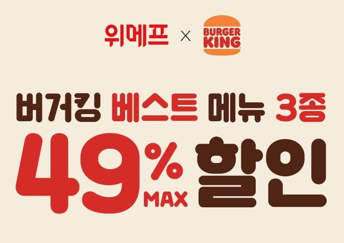 버거킹 베스트 메뉴 3종 최대 49% 할인 버거킹 베스트 메뉴 3종 최대 49% 할인 정보 포스팅입니다. 버거킹 다양한 메뉴를 할인 판매하네요. 할인 메뉴 : 와퍼주니어세트+너겟킹4조각 등 버거킹 베스트 메뉴 3종 최대 49% 할인 정보 [링크] 핫딜/식품&생활 2022.02.23