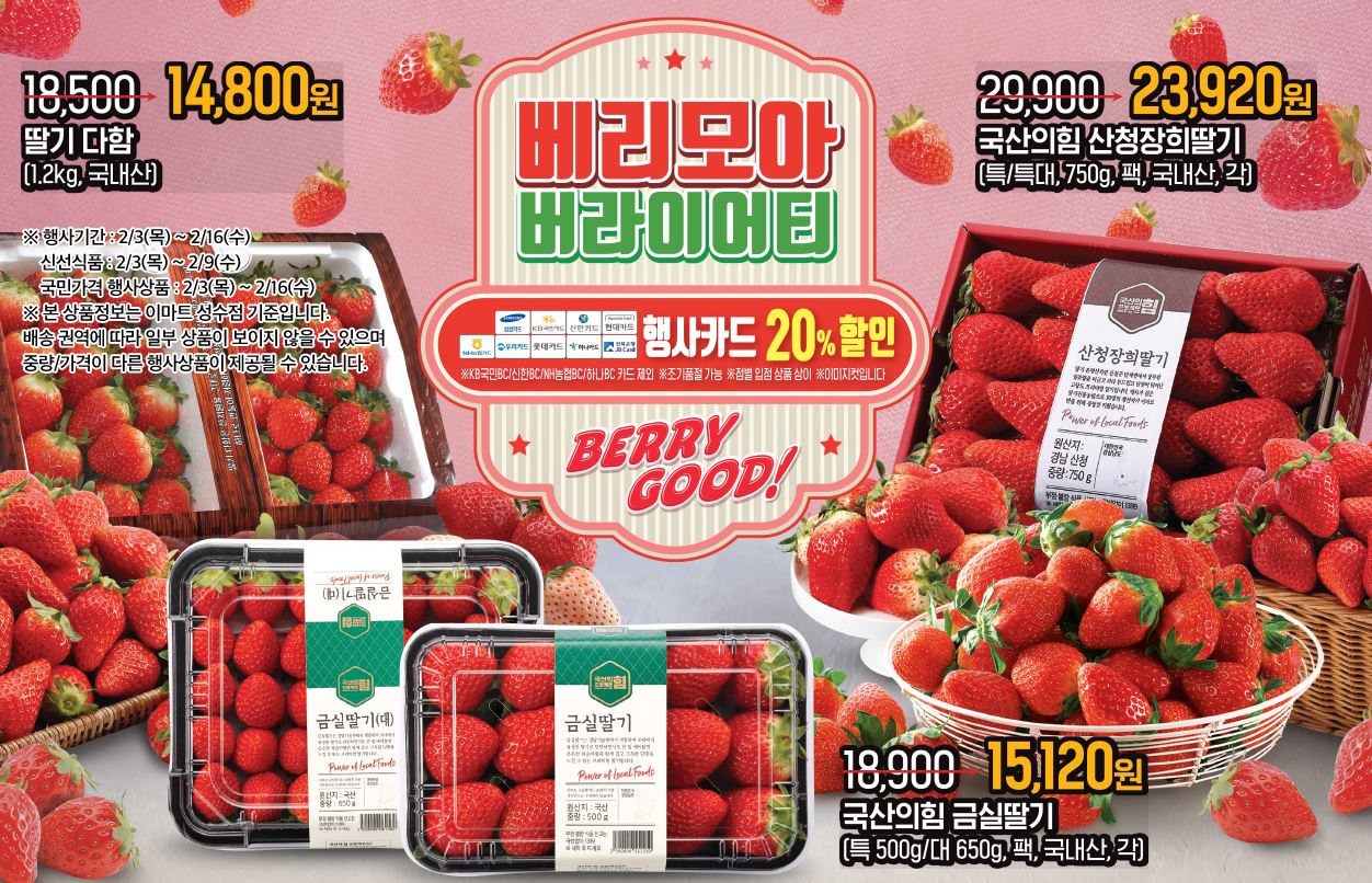 이마트 할인 이벤트 이마트 할인 이벤트 정보 포스팅입니다. 이마트 사이트에서 할인 이벤트를 진행하네요. 할인 품목 : 딸기, 육류, 초콜릿 등 이마트 할인 이벤트 정보 [링크] 핫딜/식품&생활 2022.02.03
