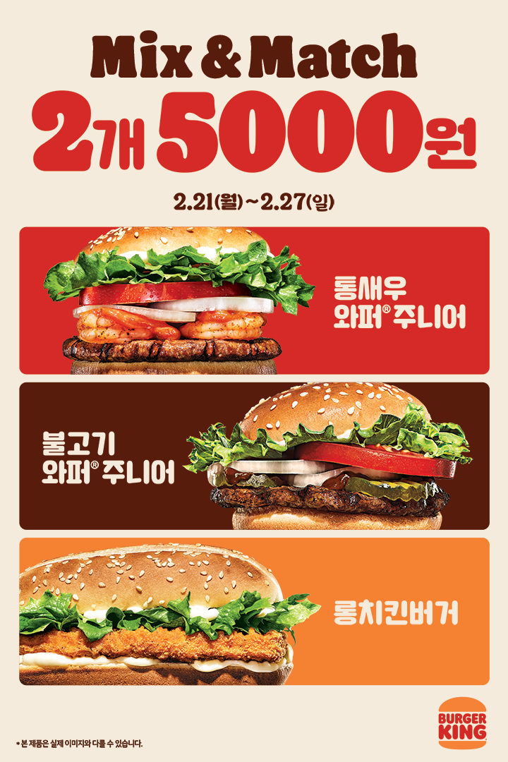 버거킹 할인 이벤트 버거킹 할인 이벤트 정보 포스팅입니다. 버거킹 이벤트 메뉴 2개 구입시 할인 이벤트를 진행하네요. 이벤트 메뉴 : 통새우와퍼주니어, 불고기와퍼주니어, 롱치킨버거 2개 구입 시 5000원 이벤트 기간 : 2022년 2월 21일 ~ 2022년 2월 27일 핫딜/식품&생활 2022.02.21