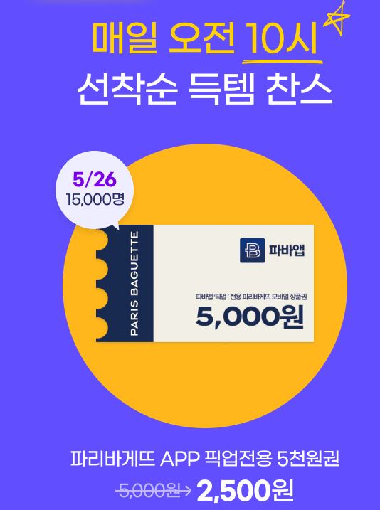 파리바게뜨 5천원권 50% 할인 파리바게뜨 5천원권 50% 할인 정보 포스팅입니다. 파리바게뜨 5천원권을 할인 판매하네요. 할인가 2500원 G마켓 [링크] 옥션 [링크] 핫딜/식품&생활 2022.05.26