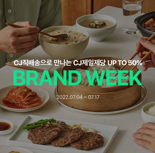 CJ 브랜드 위크 최대 50% 세일 CJ 브랜드 위크 최대 50% 세일 정보 포스팅입니다. CJ 다양한 제품을 할인 판매하네요. 할인 품목 : 햇반, 곰탕, 김치찌개 등 이벤트 기간 : 2022년 7월 17일까지 CJ 브랜드 위크 최대 50% 세일 정보 [링크] 핫딜/식품&생활 2022.07.13