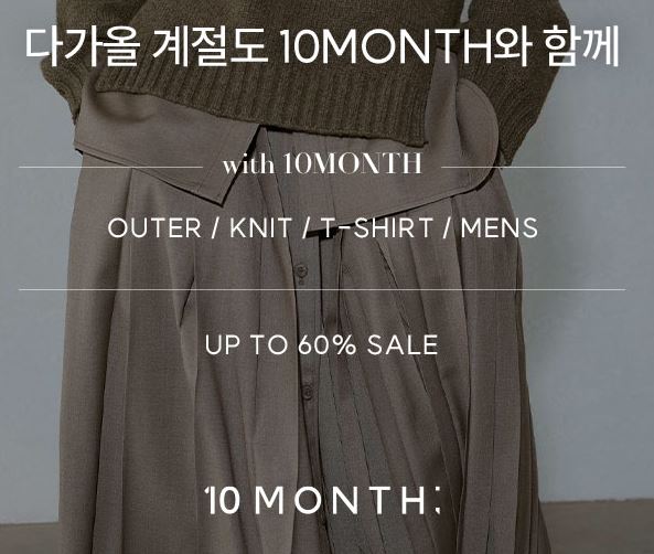 10MONTH 최대 60% 세일 10MONTH 최대 60% 세일 정보 포스팅입니다. 10MONTH 다양한 제품을 할인 판매하네요. 할인 품목 : 코트, 니트 등 이벤트 기간 : 2022년 8월 28일까지 10MONTH 최대 60% 세일 정보 [링크] 핫딜/화장품 2022.08.20