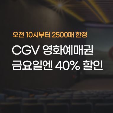 CGV 영화예매권 40% 할인 CGV 영화예매권 40% 할인 정보 포스팅입니다. CGV 영화예매권을 할인 판매하네요. 정가 15000원 / 할인가 8900원 G마켓 [링크] 옥션 [링크] 핫딜/식품&생활 2022.08.19