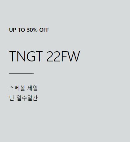 TNGT 22FW 최대 30% 세일 TNGT 22FW 최대 30% 세일 정보 포스팅입니다. TNGT 다양한 제품을 할인 판매하네요. 할인 품목 : 자켓, 코트, 티셔츠 등 이벤트 기간 : 2022년 10월 17일 오전 10시까지 TNGT 22FW 최대 30% 세일 정보 [링크] 핫딜/패션&스포츠 2022.10.08