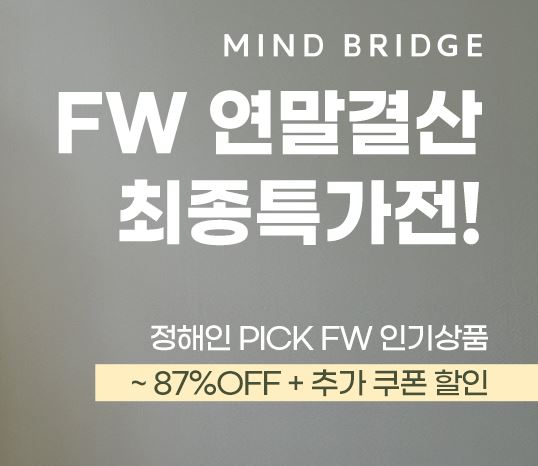 마인드브릿지 FW 연말결산 최대 87% 세일 마인드브릿지 FW 연말결산 최대 87% 세일 정보 포스팅입니다. 마인드브릿지 다양한 제품을 할인 판매하네요. 할인 품목 : 점퍼, 니트, 팬츠 등 마인드브릿지 FW 연말결산 최대 87% 세일 정보 [링크] 핫딜/패션&스포츠 2022.12.16