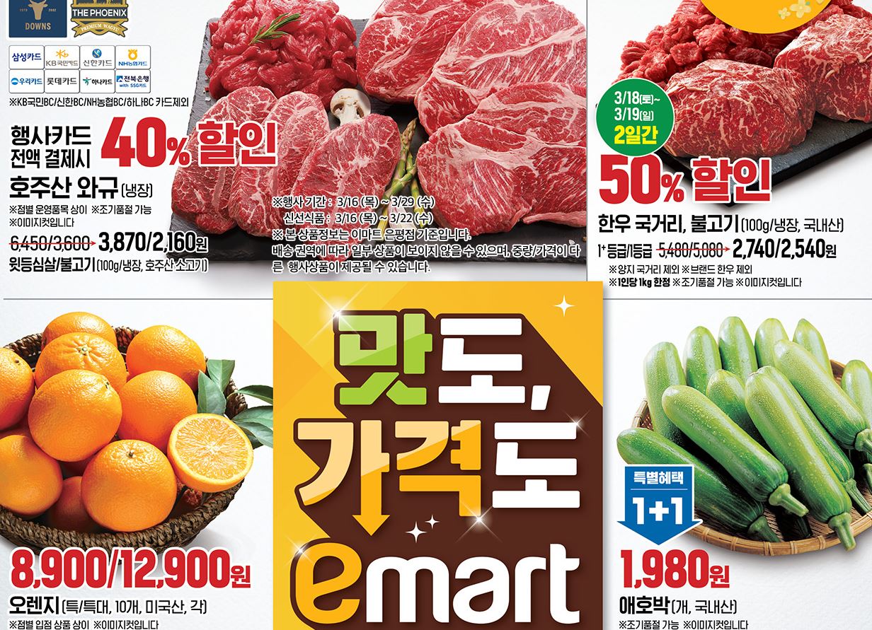 이마트 할인 이벤트 이마트 할인 이벤트 정보 포스팅입니다. 이마트 다양한 제품을 할인 판매하네요. 할인 품목 : 호주산 와규, 한우, 과일 등 이마트 할인 이벤트 정보 [링크] 핫딜/식품&생활 2023.03.16