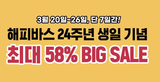 해피바스 24주년 생일 기념 최대 58% 빅 세일 해피바스 24주년 생일 기념 최대 58% 빅 세일 정보 포스팅입니다. 해피바스 다양한 제품을 할인 판매하네요. 할인 품목 : 바디워시, 샴푸 등 이벤트 기간 : 2023년 3월 26일까지 해피바스 24주년 생일 기념 최대 58% 빅 세일 정보 [링크] 핫딜/화장품 2023.03.21