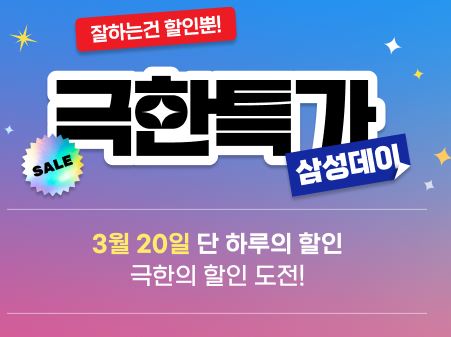 옥션 극한특가 삼성데이 이벤트 옥션 극한특가 삼성데이 이벤트 정보 포스팅입니다. 옥션 사이트에서 삼성 할인 이벤트를 진행하네요. 할인 품목 : 노트북, 휴대폰, 사운드바 등 KB국민카드, 삼성카드 결제시 8% 할인 이벤트 기간 : 2023년 3월 20일 옥션 극한특가 삼성데이 이벤트 정보 [링크] 핫딜/PC&가전 2023.03.20