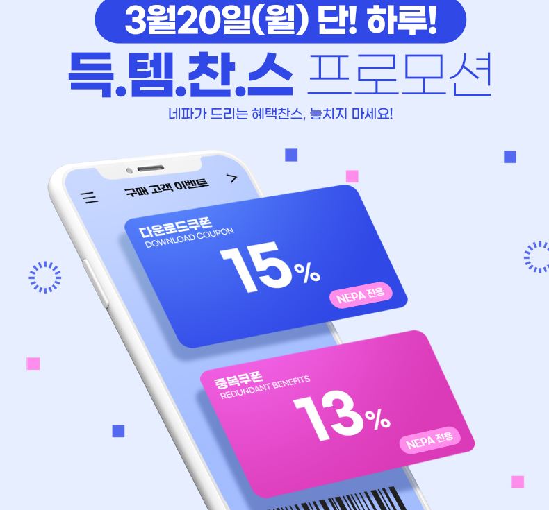 네파 하루 최대 88% 세일 네파 하루 최대 88% 세일 정보 포스팅입니다. 네파 다양한 제품을 할인 판매하네요. 할인 품목 : 자켓, 티셔츠, 슬리퍼 등 이벤트 기간 : 2023년 3월 20일 네파 하루 최대 88% 세일 정보 [링크] 핫딜/패션&스포츠 2023.03.20