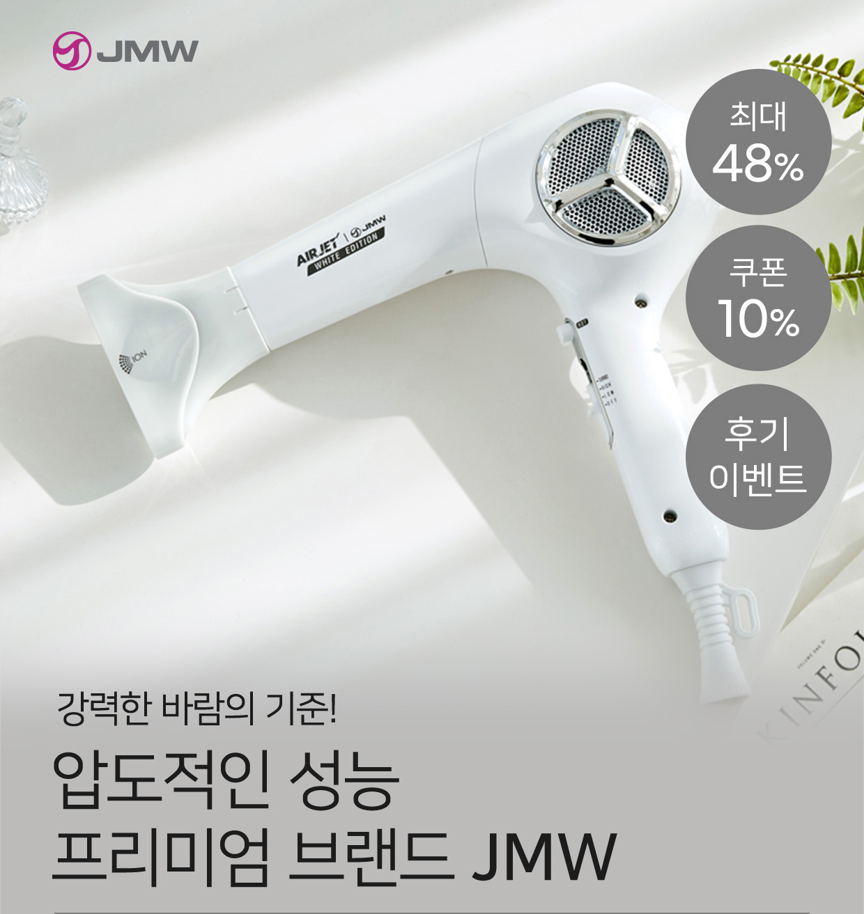 JMW 최대 48% 세일 JMW 최대 48% 세일 정보 포스팅입니다. JMW 다양한 제품을 할인 판매하네요. 할인 품목 : 드라이기, 고데기 등 이벤트 기간 : 2023년 3월 20일 오전 10시까지 JMW 최대 48% 세일 정보 [링크] 핫딜/PC&가전 2023.03.10