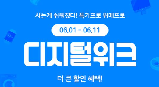 위메프 디지털 위크 위메프 디지털 위크 정보 포스팅입니다. 위메프 다양한 제품을 할인 판매하네요. 할인 품목 : 모니터, 노트북, 그래픽카드 등 이벤트 기간 : 2023년 6월 11일까지 위메프 디지털 위크 정보 [링크] 핫딜/PC&가전 2023.06.07
