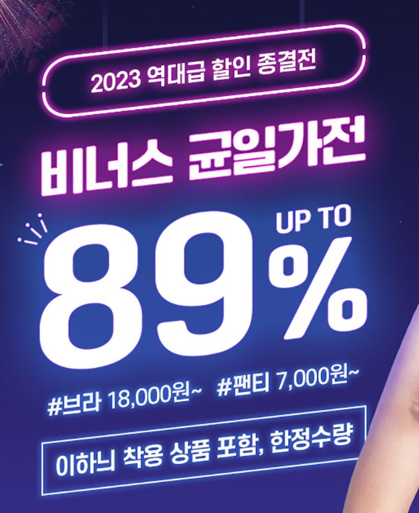 비너스 균일가전 비너스 균일가전 정보 포스팅입니다. 비너스 다양한 제품을 할인 판매하네요. 할인 품목 : 브라, 팬티, 파자마 등 비너스 균일가전 정보 [링크] 핫딜/패션&스포츠 2023.08.28
