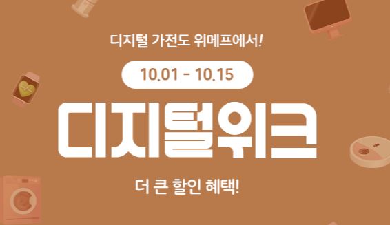위메프 디지털 위크 위메프 디지털 위크 정보 포스팅입니다. 위메프 다양한 제품을 할인 판매하네요. 할인 품목 : 모니터, 노트북, 그래픽카드, 게임기 등 이벤트 기간 : 2023년 10월 15일까지 위메프 디지털 위크 정보 [링크] 핫딜/PC&가전 2023.10.14