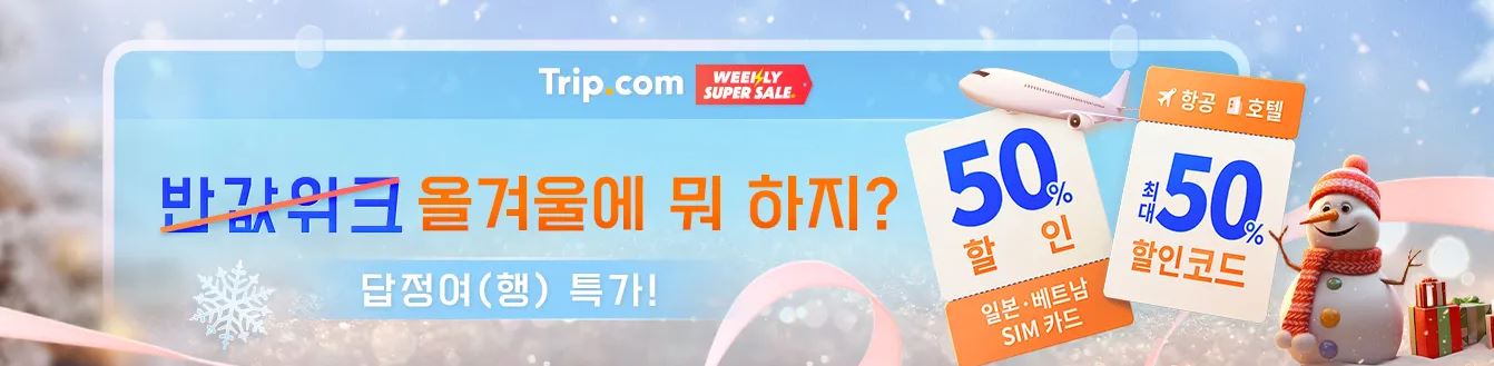 트립닷컴 반값위크 트립닷컴 반값위크 정보 포스팅입니다. 트립닷컵 반값위크 이벤트를 진행하네요. 할인 품목 : 항공권, 숙박요금 등 이벤트 기간 : 2023년 11월 25일 트립닷컴 반값위크 정보 [링크] 핫딜/식품&생활 2023.11.25