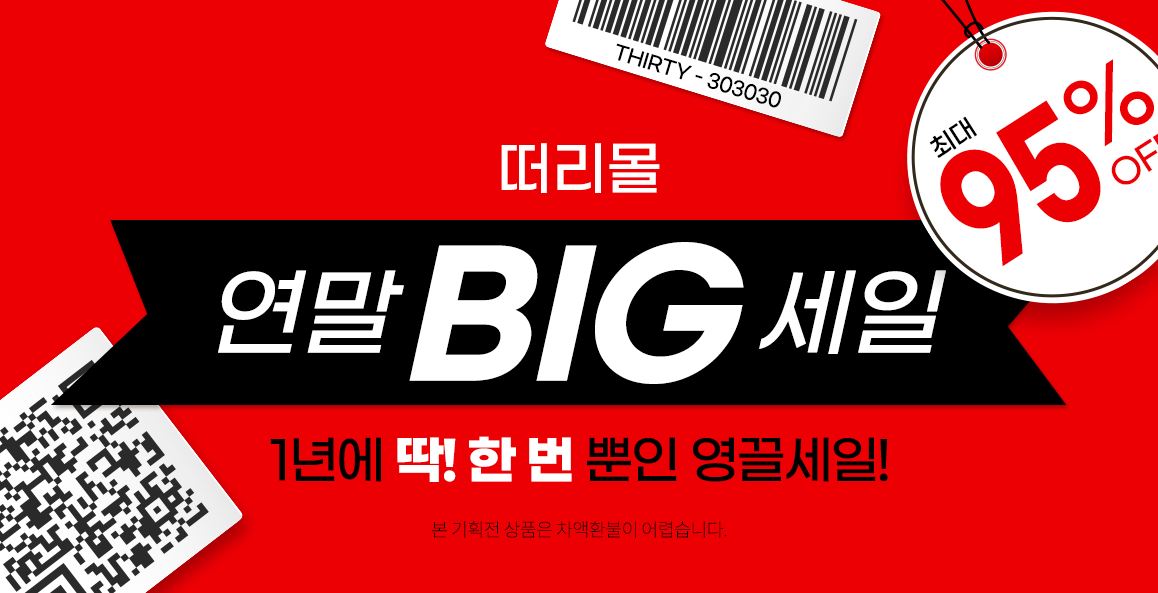 떠리몰 연말 빅 세일 떠리몰 연말 빅 세일 정보 포스팅입니다. 떠리몰 다양한 제품을 할인 판매하네요. 할인 품목 : 음료, 아이스크림, 가공식품 등 떠리몰 연말 빅 세일 정보 [링크] 핫딜/식품&생활 2023.11.29