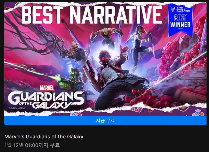 에픽게임즈 마블의 가디언즈 오브 갤럭시 무료 에픽게임즈 마블의 가디언즈 오브 갤럭시 무료 정보 포스팅입니다. 에픽게임즈 마블의 가디언즈 오브 갤럭시 무료 이벤트를 진행하네요. 이벤트 기간 : 2023년 1월 12일 오전 1시까지 에픽게임즈 마블의 가디언즈 오브 갤럭시 무료 정보 [링크] 핫딜/PC&가전 2024.01.05
