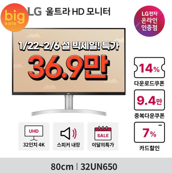 LG 32UN650 32인치 4K모니터 할인 LG 32UN650 32인치 4K모니터 할인 정보 포스팅입니다. LG 32UN650 32인치 4K모니터을 할인 판매하네요. 최대 할인가 369410원 무료배송 LG 32UN650 32인치 4K모니터 할인 정보 [링크] 핫딜/PC&가전 2024.01.22