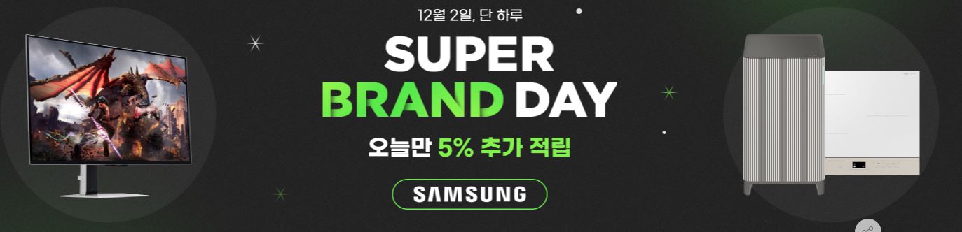 삼성전자 슈퍼 브랜드 데이 이벤트 삼성전자 슈퍼 브랜드 데이 이벤트 정보 포스팅입니다. 삼성전자 다양한 제품을 할인 판매하네요. 할인 품목 : 모니터, 노트북, 휴대폰, 이어폰 등 이벤트 기간 : 2024년 12월 2일 삼성전자 슈퍼 브랜드 데이 이벤트 정보 [링크] 핫딜/PC&가전 2024.12.02
