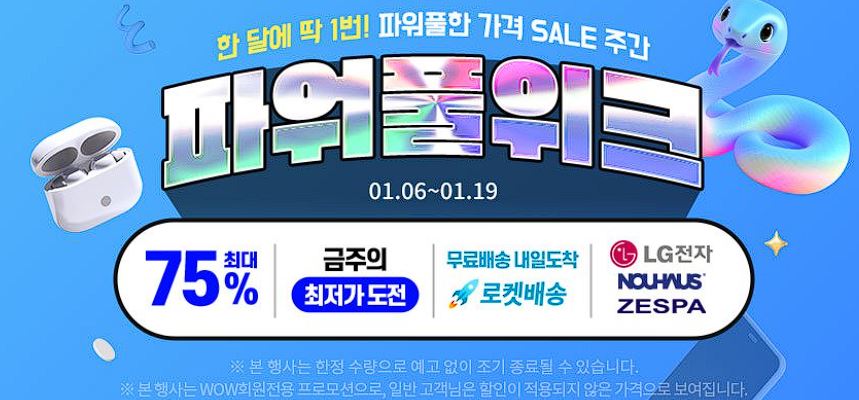 쿠팡 가전 파워풀위크 쿠팡 가전 파워풀위크 정보 포스팅입니다. 쿠팡 다양한 제품을 할인 판매하네요. 할인 품목 : 노트북, 모니터, 헤어드라이기 등 이벤트 기간 : 2025년 1월 19일까지 쿠팡 가전 파워풀위크 정보 [링크] 핫딜/PC&가전 2025.01.15