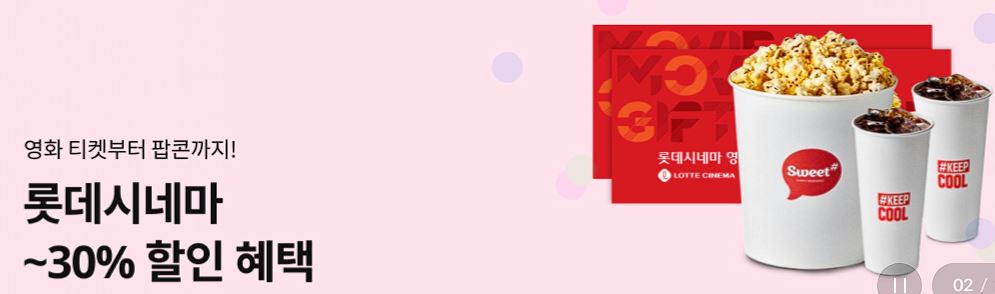 롯데시네마 최대 30% 할인 롯데시네마 최대 30% 할인 정보 포스팅입니다. 롯데시네마 다양한 제품을 할인 판매하네요. 할인 품목 : 영화관람권, 스위트콤보권 등 롯데시네마 최대 30% 할인 정보 [링크] 핫딜/패션&스포츠 2025.02.14