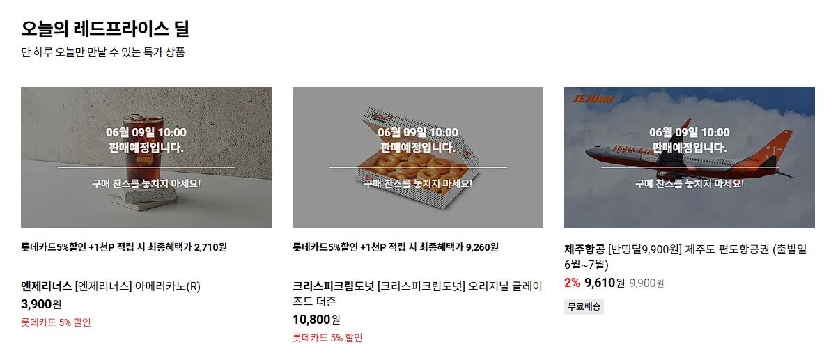 롯데온 레드프라이스 딜 이벤트 롯데온 레드프라이스 딜 이벤트 정보 포스팅입니다. 롯데온 하루 특가 이벤트를 진행하네요. 할인 품목 : 제주도 항공권, 엔제리너스 아메리카노 등 이벤트 기간 : 2025년 6월 9일 롯데온 레드프라이스 딜 이벤트 정보 [링크] 핫딜/식품&생활 2025.06.09