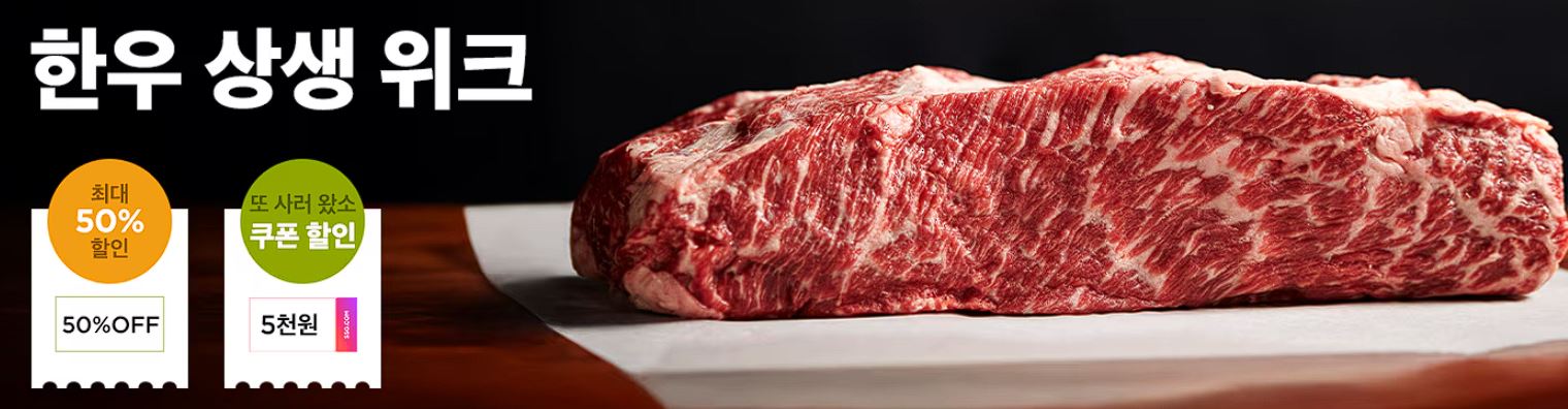 SSG 한우 상생 위크 최대 50% 할인 SSG 한우 상생 위크 최대 50% 할인 정보 포스팅입니다. 한우 다양한 제품을 할인 판매하네요. 할인 품목 : 불고기, 양지국거리, 스테이크용 등 이벤트 기간 : 2025년 6월 12일까지 SSG 한우 상생 위크 최대 50% 할인 정보 [링크] 핫딜/식품&생활 2025.06.09