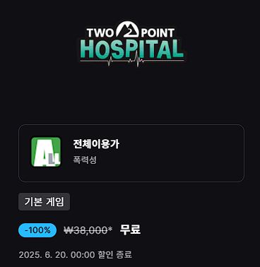 에픽게임즈 투 포인트 호스피탈 무료 에픽게임즈 투 포인트 호스피탈 무료 정보 포스팅입니다. 에픽게임즈 투 포인트 호스피탈 무료 증정하네요. 이벤트 기간 : 2025년 6월 19일까지 에픽게임즈 투 포인트 호스피탈 무료 정보 [링크] 핫딜/PC&가전 2025.06.13