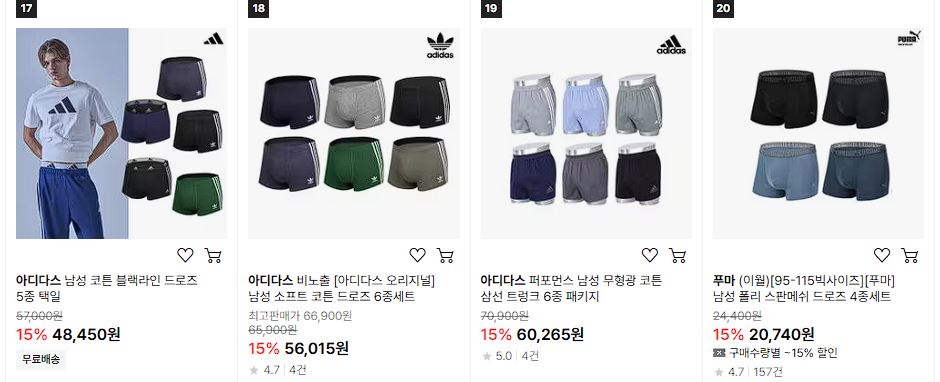 푸마/아디다스 외 언더웨어 할인 푸마/아디다스 외 언더웨어 할인 정보 포스팅입니다. 다양한 제품을 할인 판매하네요. 할인 품목 : 드로즈, 브라탑, 브라 등 푸마/아디다스 외 언더웨어 할인 정보 [링크] 핫딜/패션&스포츠 2025.06.17