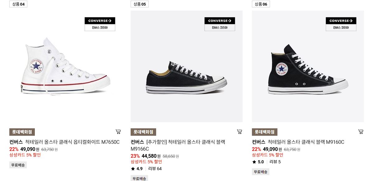 컨버스 할인 이벤트 컨버스 할인 이벤트 정보 포스팅입니다. 컨버스 다양한 제품을 할인 판매하네요. 할인 품목 : 운동화, 가방, 티셔츠 등 3만원 이상 무료배송 컨버스 할인 이벤트 정보 [링크] 핫딜/패션&스포츠 2025.07.13