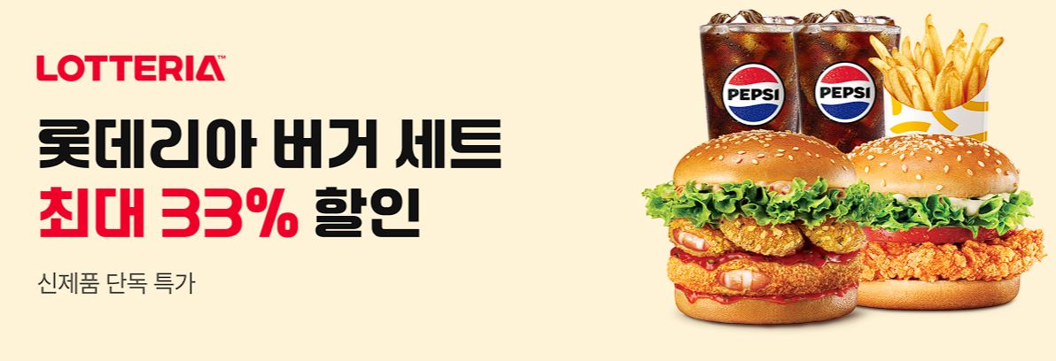 롯데리아 신제품 최대 33% 할인 롯데리아 신제품 최대 33% 할인 정보 포스팅입니다. 롯데리아 신제품을 할인 판매하네요. 할인 품목 : 청양 바삭 통새우버거, 청양 칠리 새우베이컨버거 등 롯데리아 신제품 최대 33% 할인 정보 [링크] 핫딜/식품&생활 2025.08.14