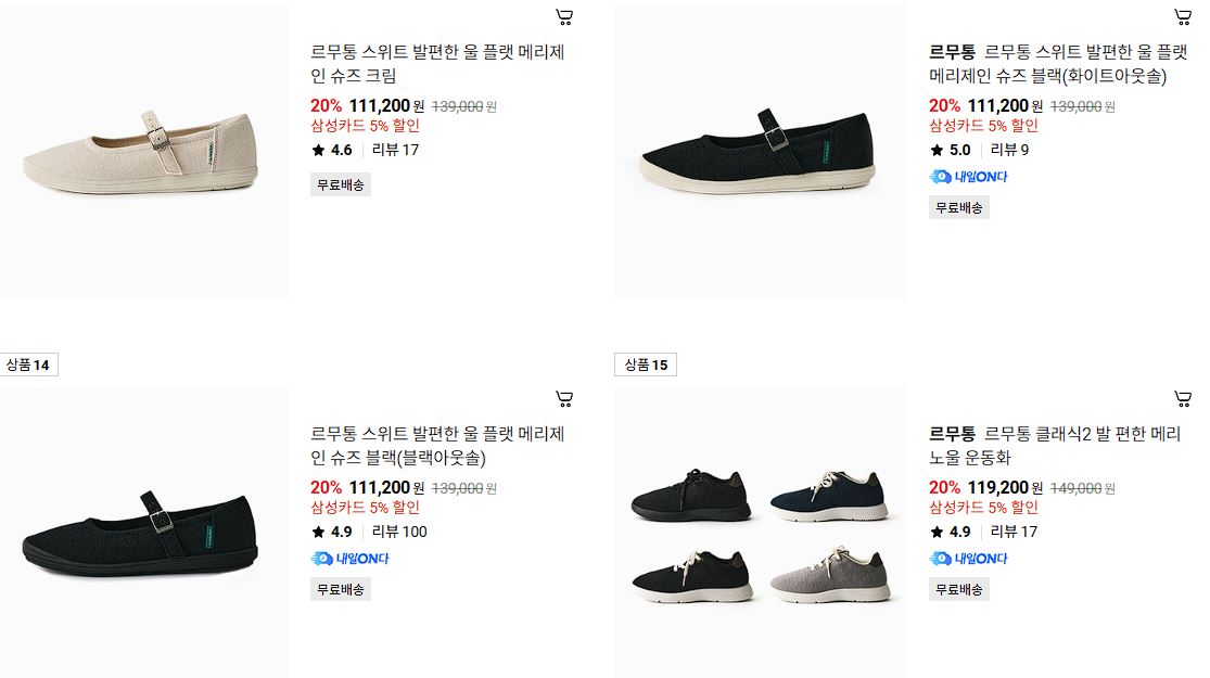 르무통 할인 이벤트 르무통 할인 이벤트 정보 포스팅입니다. 르무통 다양한 제품을 할인 판매하네요. 할인 품목 : 운동화 무료배송 르무통 할인 이벤트 정보 [링크] 핫딜/패션&스포츠 2025.08.18