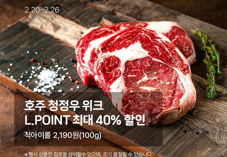 롯데마트 호주 청정우 위크 최대 40% 할인 롯데마트 호주 청정우 위크 최대 40% 할인 정보 포스팅입니다. 롯데마트 다양한 제품을 할인 판매하네요. 할인 품목 : 척아이롤, 부채살 등 이벤트 기간 : 2025년 2월 20일 ~ 2025년 2월 26일 롯데마트 호주 청정우 위크 최대 40% 할인 정보 [링크] 핫딜/식품&생활 2025.02.20