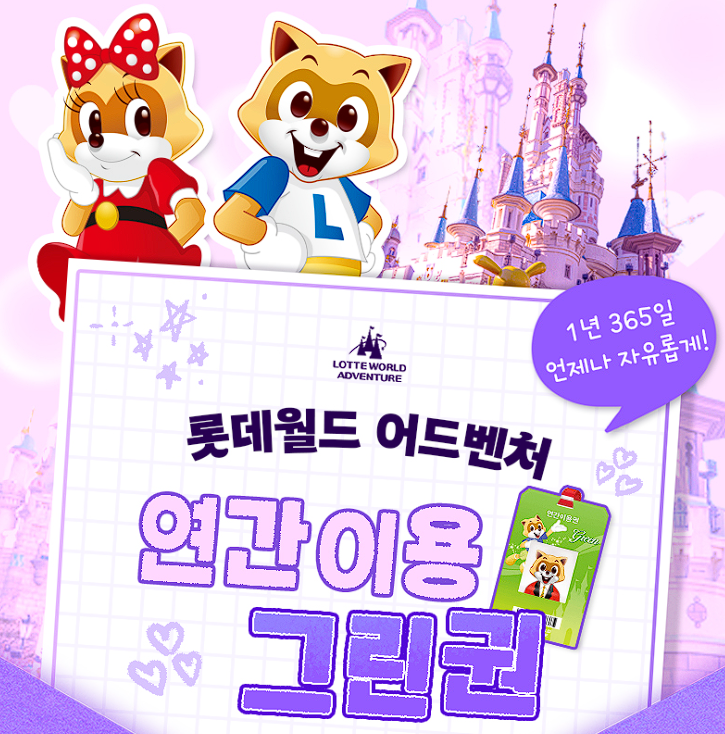 롯데월드 연간이용 그린권 22% 할인 롯데월드 연간이용 그린권 22% 할인 정보 포스팅입니다. 롯데월드 연간이용 그린권 22% 할인 판매하네요. 대인권 210000원 어린이권 148000원 롯데월드 연간이용 그린권 22% 할인 정보 [링크] 핫딜/식품&생활 2025.05.01