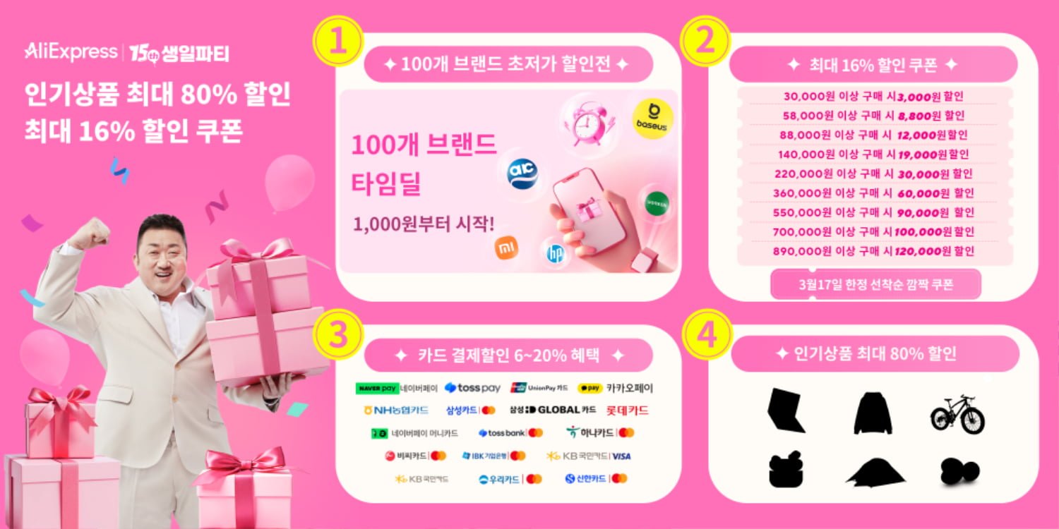 알리익스프레스 15th 생일파티 이벤트
