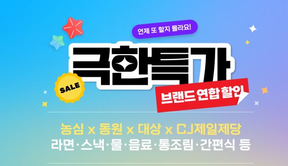농심/동원 외 극한특가 이벤트 농심/동원 외 극한특가 이벤트 정보 포스팅입니다. 다양한 제품을 할인 판매하네요. 할인 품목 : 라면, 음료, 과자 등 이벤트 기간 : 2024년 8월 12일 농심/동원 외 극한특가 이벤트 정보 [링크] 핫딜/식품&생활 2024.08.12