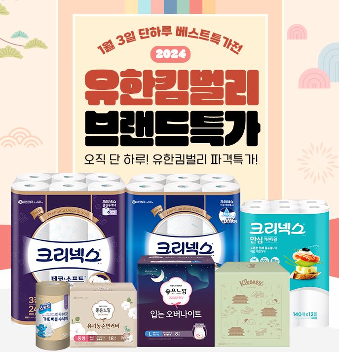 유한킴벌리 브랜드 특가 이벤트 유한킴벌리 브랜드 특가 이벤트 정보 포스팅입니다. 유한킴벌리 다양한 제품을 할인 판매하네요. 할인 품목 : 크리넥스, 물티슈 등 무료배송 유한킴벌리 브랜드 특가 이벤트 정보 [링크] 핫딜/식품&생활 2024.01.03