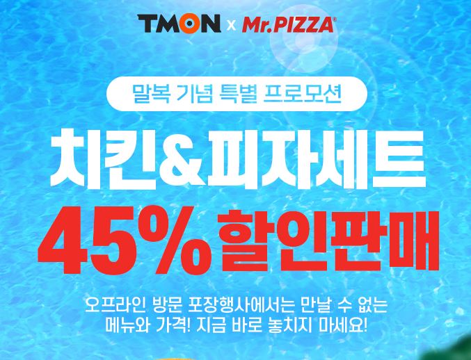 미스터피자 45% 할인 미스터피자 45% 할인 정보 포스팅입니다. 미스터피자 할인 이벤트를 진행하네요. 할인 메뉴 : 페페로니플러스피자 + 리얼빠삭순살치킨 + 콜라 사용 기간 : 2022년 9월 15일까지 미스터피자 45% 할인 정보 [링크] 핫딜/식품&생활 2022.08.11