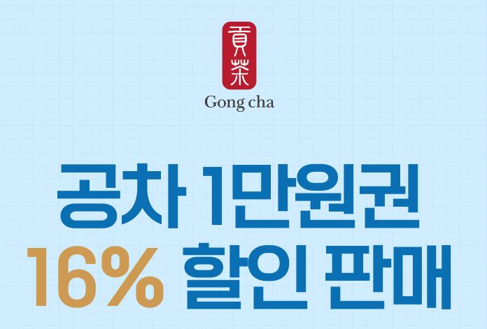 공차 1만원권 16% 할인 공차 1만원권 16% 할인 정보 포스팅입니다. 공차 1만원권을 할인 판매하네요. 정가 1만원 / 할인가 8400원 공차 1만원권 16% 할인 정보 [링크] 핫딜/식품&생활 2022.06.22