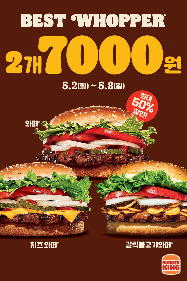 버거킹 할인 이벤트 버거킹 할인 이벤트 정보 포스팅입니다. 버거킹 이벤트 버거 2개를 할인 판매하네요. 이벤트 버거 : 와퍼, 치즈와퍼, 갈릭불고기 와퍼 2개 7000원 이벤트 기간 : 2022년 5월 2일 ~ 2022년 5월 8일 핫딜/식품&생활 2022.05.02