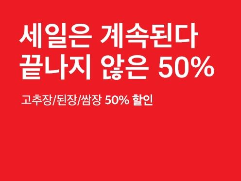 홈플러스 50% 할인 홈플러스 50% 할인 정보 포스팅입니다. 홈플러스 다양한 제품을 할인 판매하네요. 할인 품목 : 쌈장, 척아이롤, 주방용품 등 홈플러스 50% 할인 정보 [링크] 핫딜/식품&생활 2022.03.18