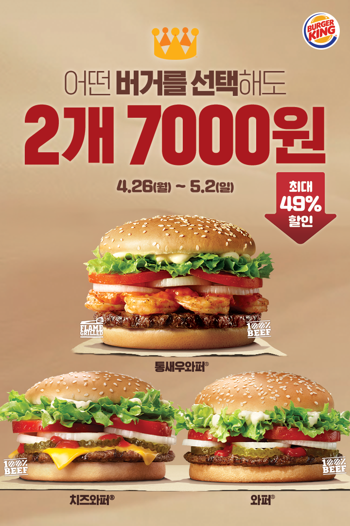 버거킹 할인 이벤트 버거킹 할인 이벤트 정보 포스팅입니다. 버거킹 다양한 이벤트를 진행하네요. 이벤트 버거 두개 구입시 할인. 세트 메뉴 할인 버거킹 앱 주문 시 5000원 할인 이벤트 기간 : 2021년 4월 26일 ~ 5월 2일 핫딜/식품&생활 2021.04.26